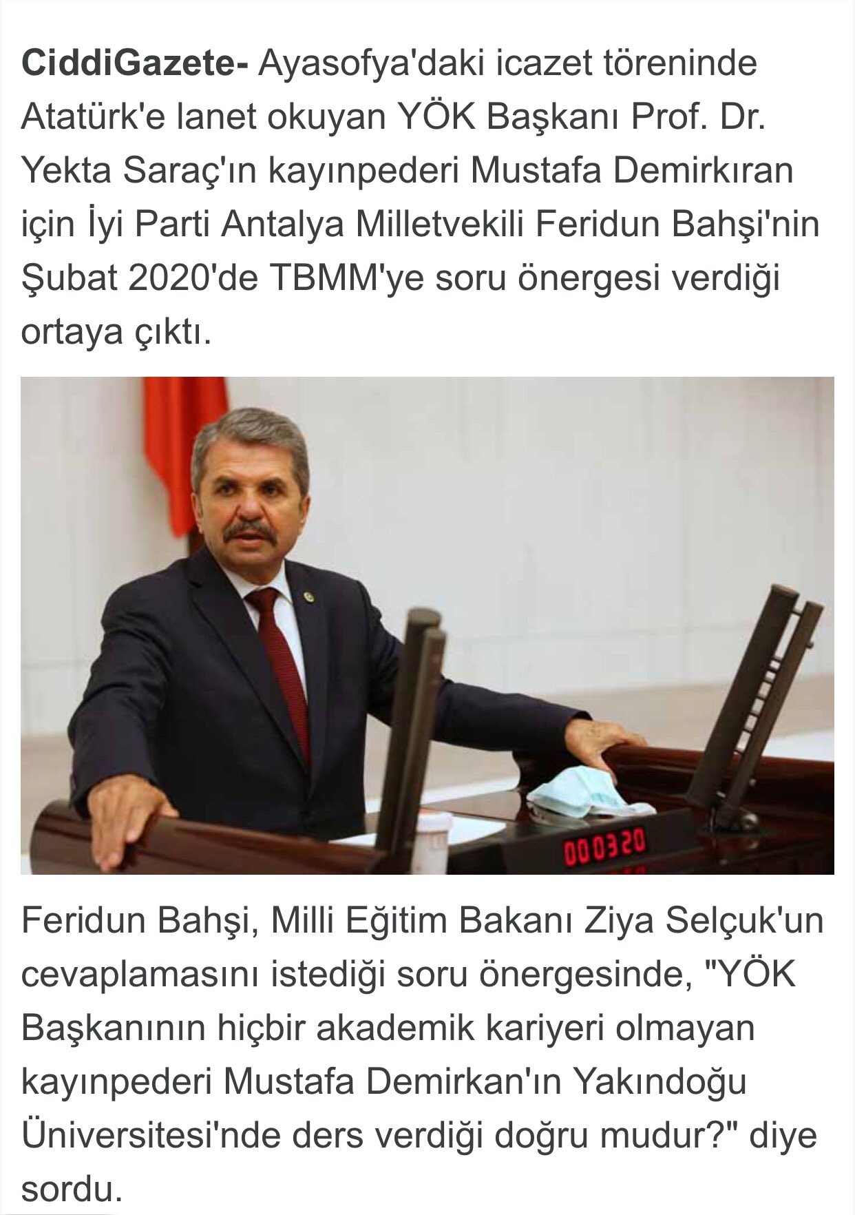 Demirkan'ın oğlunun nikah şahitliğini emine erdoğan yapmış, düğüne sümeyye erdoğan da katılmış. .mustafa demirkan, yükseköğretim kurulu (yök) başkanı yekta saraç'ın kayınpederi çıktı. .cumhurbaşkanı erdoğan'ın katıldığı programda atatürk'e 'zalim ve kafir' diye lanet okuyan imam mustafa demirkan, yükseköğretim kurulu (yök) başkanı yekta saraç'ın kayınpederi çıktı. Yekta saraç'ın babası muhammed emin saraç'ın cenaze namazını, dünürü mustafa demirkan kıldırdı. Yök başkanı haberleri, güncel son dakika gelişmeleri ve bugün yer alan son durum bilgileri için tıklayın! Erdoğan gibi rize güneysulu olan demirkan'ın yök başkanı saraç'ın kayınpederi olduğu anlaşıldı. Mustafa demirkıran, aynı zamanda yök başkanı yekta saraç'ın da kayınpederi. Yükseköğretim kurulu (yök), 1982 anayasası'nın 131. Yükseköğretim kurumlarının öğretimini planlamak, düzenlemek, yönetmek, denetlemek. .off topic >> ülke ve dünya gündemi >> atatürk'e lanet okuyan imam mustafa demirkan'ın, yök. .okuyan imam, erdoğan'ın çocukluk arkadaşı, yök başkanı'nın da kayınpederi çıktı. .akp'li cumhurbaşkanı recep tayyip erdoğan gibi rize güneysulu ve yükseköğretim kurulu (yök) başkanı yekta saraç'ın kayınpederi. Yök başkanının hiçbir akademik kariyeri olmayan kayınpederi mustafa demirkan'ın yakındoğu üniversitesinde ders verdiği doğru mudur?